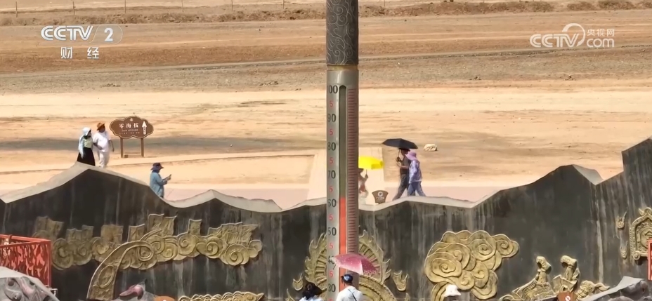在吐魯番市火焰山景區,金箍棒造型的巨型温度計前排滿了打卡拍照的遊客。沙窩裏用天然熱度烤出的雞蛋,灑上辣椒麪和孜然,就有了獨具特色的“火焰山味道”。這些新奇的感受,讓不少專程趕來體驗“熱”的遊客,過了一把在“火洲”度夏的癮。而各種各樣《西遊記》主題的文創產品,更是吸引了眾多遊客,連續多天當地遊客日均接待量都超過4500人次。