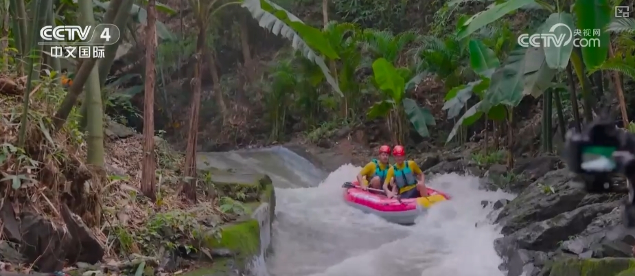 在廣東清遠的古龍峽景區,人們划着漂流船在飛舟浪尖的激盪中體驗“過山車”似的快感。這條漂流賽道全程落差達378米,全程都設置在森林裏,兩岸綠樹成蔭,翻騰的浪花不斷拍打着岩石,遊客們在激流中划動槳葉,暢享夏日暢快。