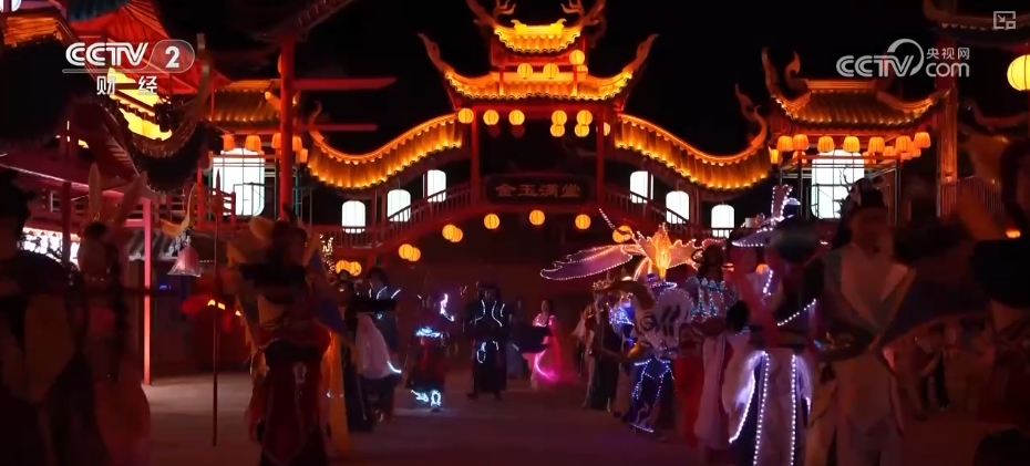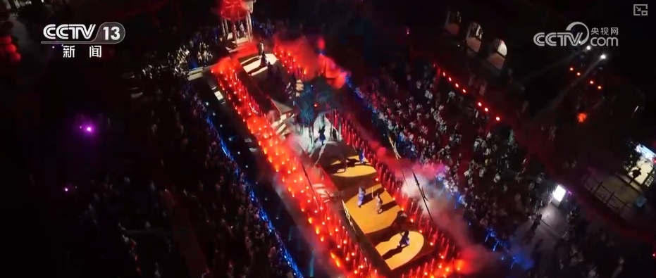 不僅是大型的沉浸式表演,還有很多表演項目,比如皮影戲,可以説真的是“雙手對舞百萬兵”。還有轉盤子、頂大缸等雜技表演,以及傳統魔術“三仙歸洞”。