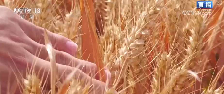 為什麼説這裏是高產示範田?首先看密度,這些麥穗緊緊相鄰,從上方看很難找到一個可以把手掌插進去的位置,對應到常説的畝穗數,每畝是52萬穗左右,比一般的麥田要多10萬穗。其次是看穗粒數和籽粒飽滿程度,摘一穗,不用搓開都能感受到,從上到下籽粒飽滿,沒有空粒癟粒。最後體現到產量上,經過前期測產,2025年畝產有望超900公斤,將衝刺全國冬小麥的高產紀錄。