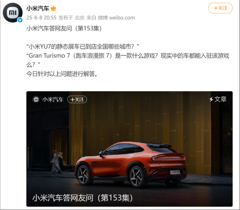 【環球網科技綜合報道】6月9日消息,小米汽車日前回應網友稱,Gran Turismo(《GT賽車》)將與小米汽車一同完成車輛收錄及相關開發工作,在遊戲中儘可能還原小米SU7 Ultra的極致駕控體驗,到最終上線還需要一段時間。