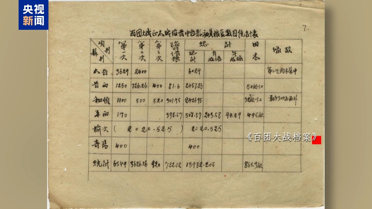 首次公開的*《正太戰役晉中各縣動員情況統計》*,也從側面生動展現着中華兒女團結一心、抗戰到底的決心。