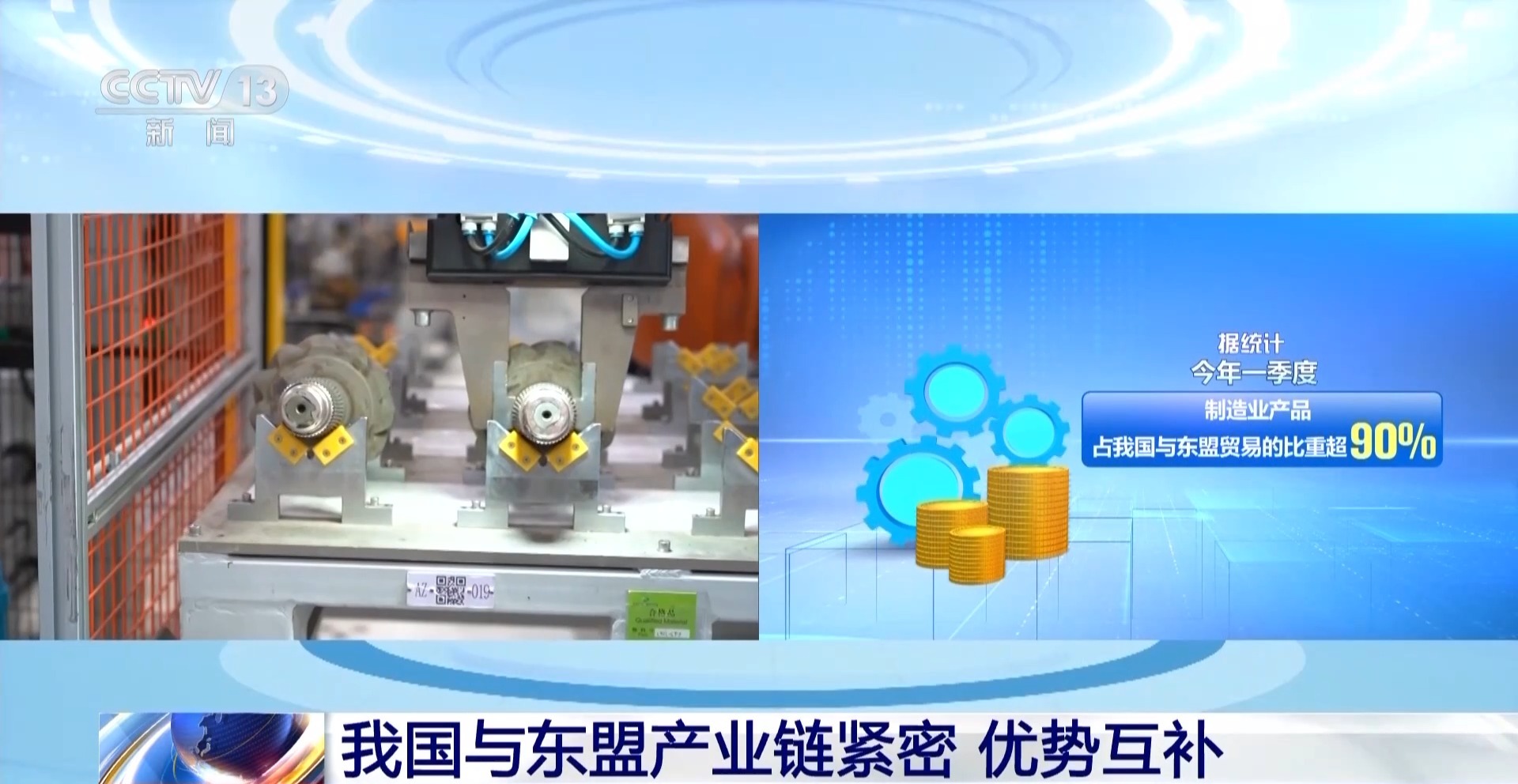據統計,今年一季度,製造業產品佔我國與東盟貿易的比重超90%,其中,我國對東盟出口平板顯示模組、汽車零配件、鋰電池增速都超過兩成;我國自東盟進口自動數據處理設備的零部件、印刷電路、紡織原料等都保持增長。