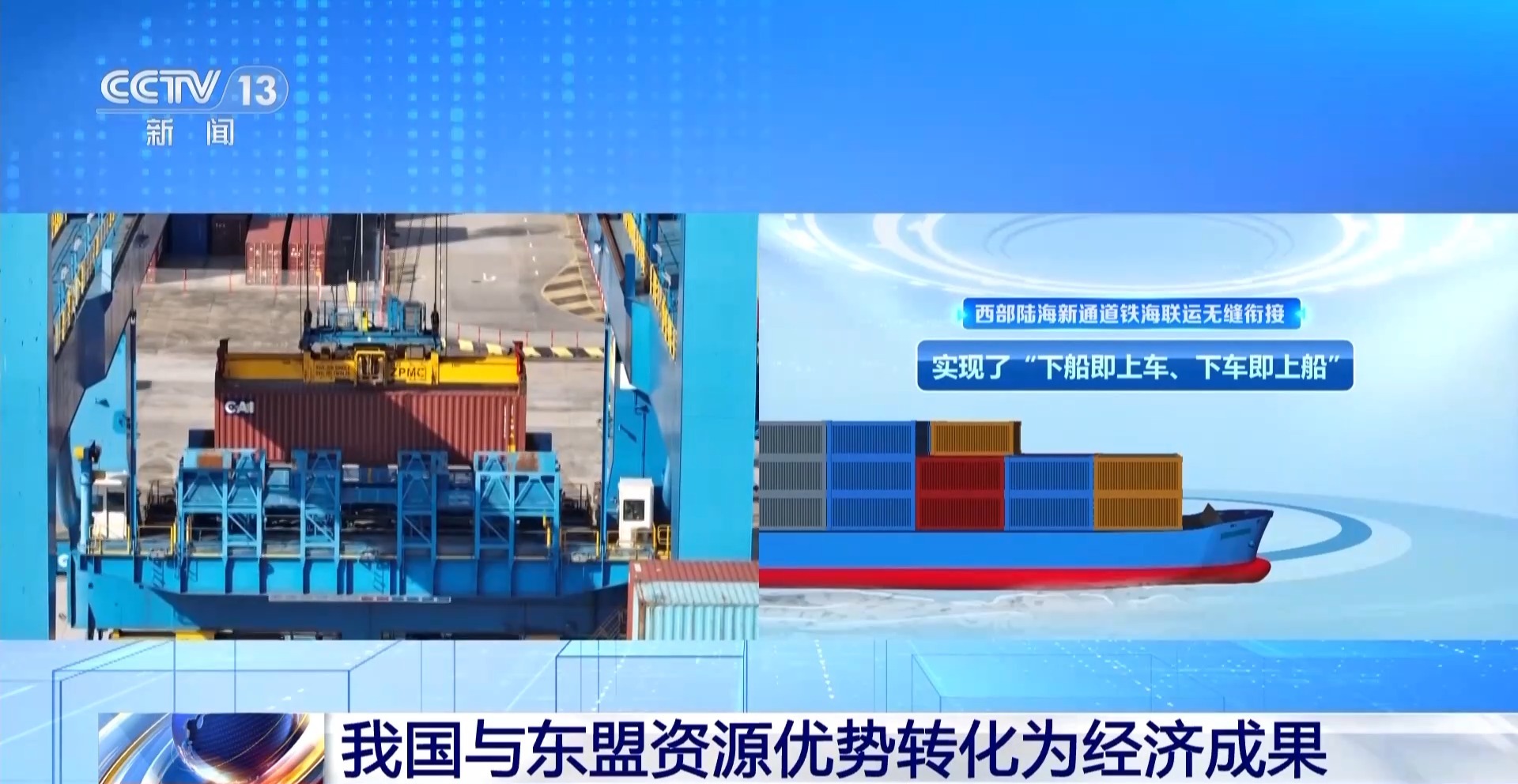 除了製造業和農產品進出口旺盛,隨着我國與東盟基礎設施互聯互通的建設紮實推進,雙方貿易往來也更加順暢,雙方的資源優勢也轉化為實實在在的經濟成果。今年一季度,我國以鐵路、公路、水運、航空運輸對東盟的進出口分別增長了37%、23.2%、5.8%和16.4%。中老鐵路運行三年多來,累計開行貨物列車已經超過5萬列,西部陸海新通道鐵海聯運無縫銜接,實現了“下船即上車、下車即上船”。