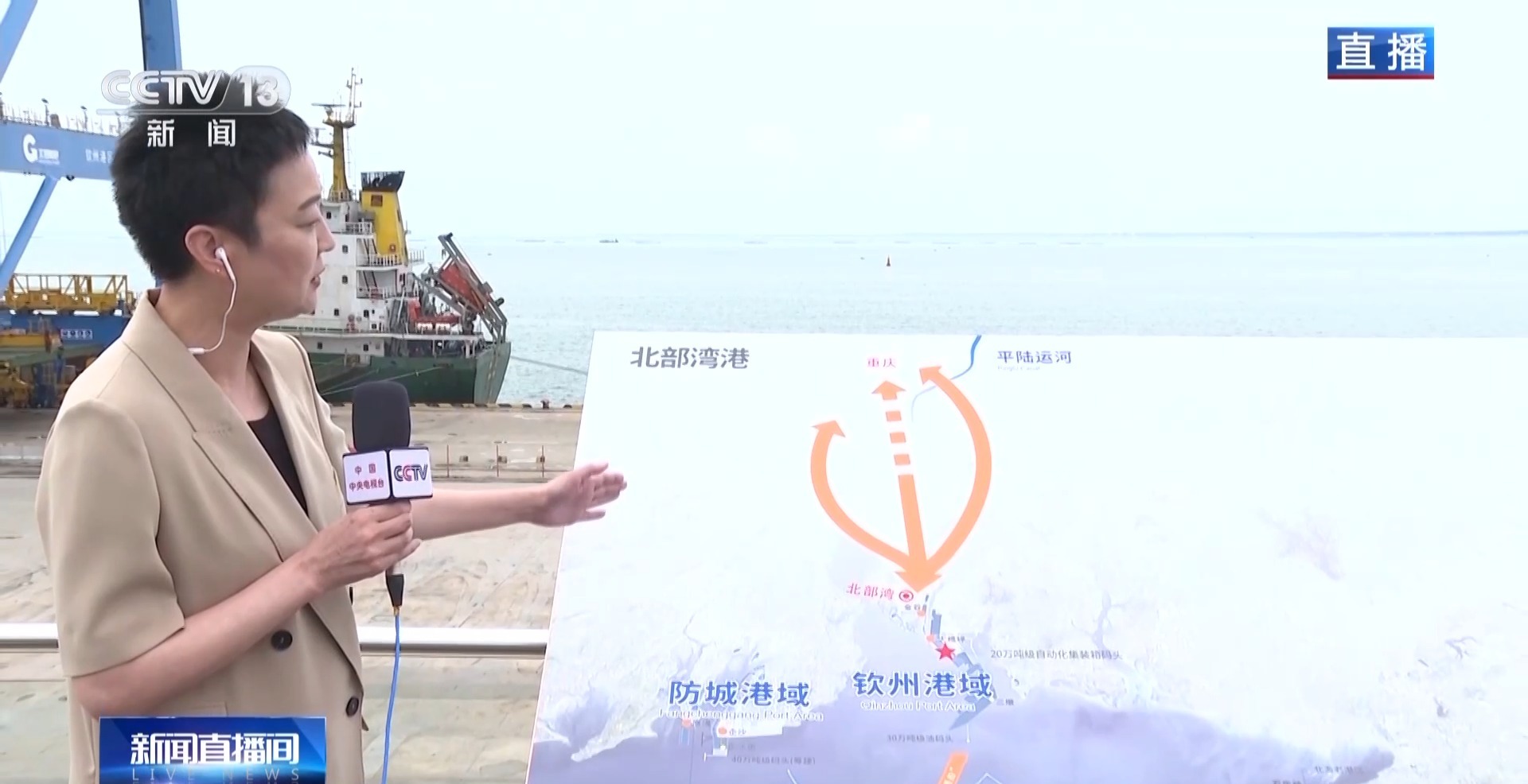從地理位置上看,北部灣港背靠我國大西南,輻射中國西部區域、銜接亞歐大陸,面向東盟、聯通全球,是西部陸海新通道重要的國際門户港。中西部地區的產品,像重慶的筆記本電腦和摩托車、湖南的工程機械、河南的超硬材料、安徽的電動汽車、山西的能源裝備等中國製造業優品通過西部陸海新通道集結欽州港,發往東盟,或走向世界各地。