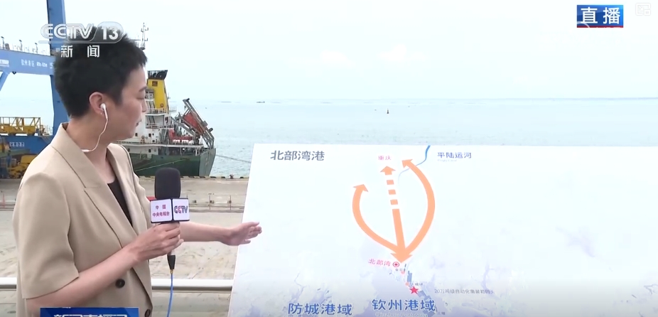 從地理位置上看,北部灣港背靠我國大西南,輻射中國西部區域,銜接亞歐大陸,面向東盟、連通全球,是西部陸海新通道的國際門户港。中西部地區的產品,像重慶的筆記本電腦和摩托車、安徽的電動汽車、湖南的工程機械、河南的超硬材料、山西的能源裝備等中國製造業優品通過陸海新通道集結欽州港,從這裏啓航發往東盟,或走向世界各地。