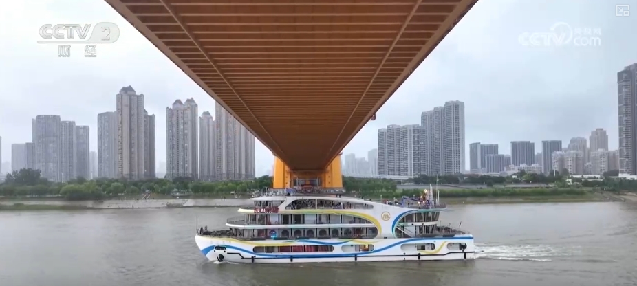 在湖北武漢,這段時間雨天較多,為此當地特別打造了“雨中限定之旅”。長江遊船調整了新的航線,繞行至楊泗港大橋下方穿行。當船隻穿越大橋“雨簾”時,還設置了“聽雨”環節。