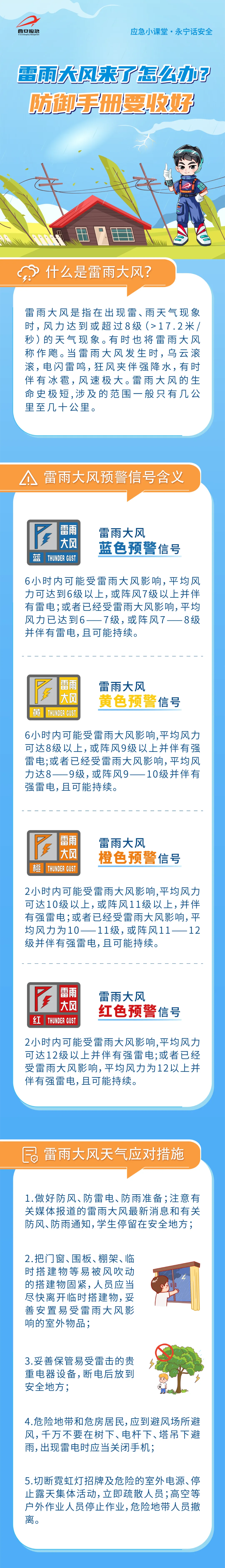 1.做好防風、防雷電、防雨準備;注意有關媒體報道的雷雨大風最新消息和有關防風、防雨通知,學生停留在安全地方;