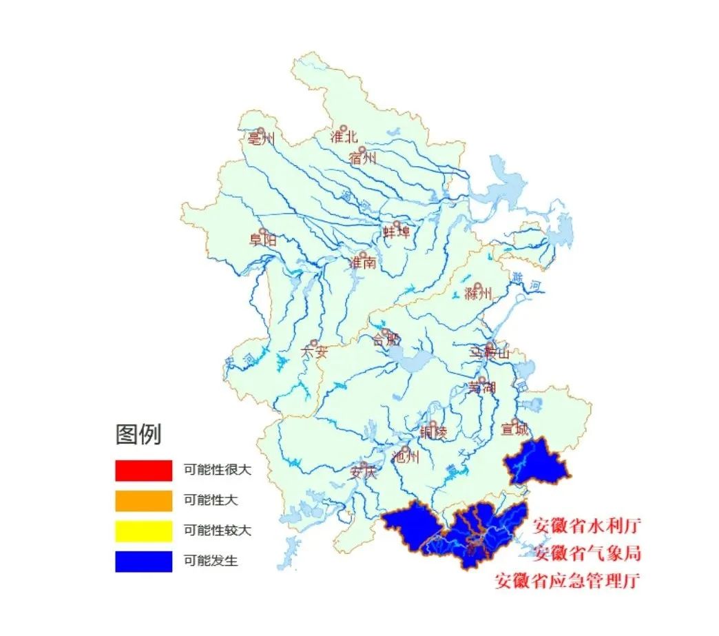安徽省自然資源廳、安徽省氣象局和安徽省應急管理廳聯合發佈: