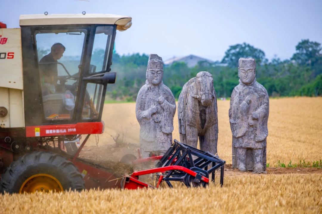 每年麥收季,陵區麥田會採用收割機進行機械作業,工作人員引導農機手避讓石像。針對石刻周圍的作物,工作人員都會對其進行人工收割,更穩妥地保護文物。