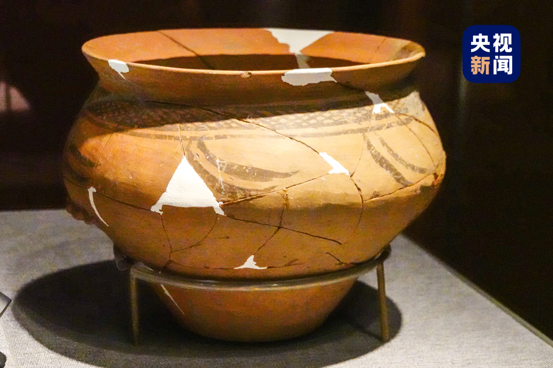 △中國考古博物館內收藏的雙槐樹遺址的陶器。