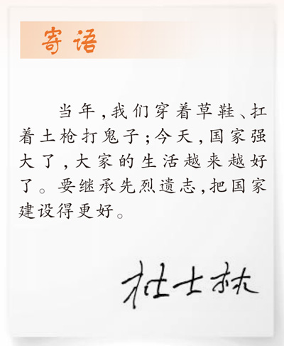 當年盼望的好日子已成為眼下的日常生活,杜士林滿心欣慰更滿懷期待,“好日子是戰士們用鮮血換來的。我們要保持艱苦奮鬥的精神,珍惜現在的美好生活。”杜士林説。