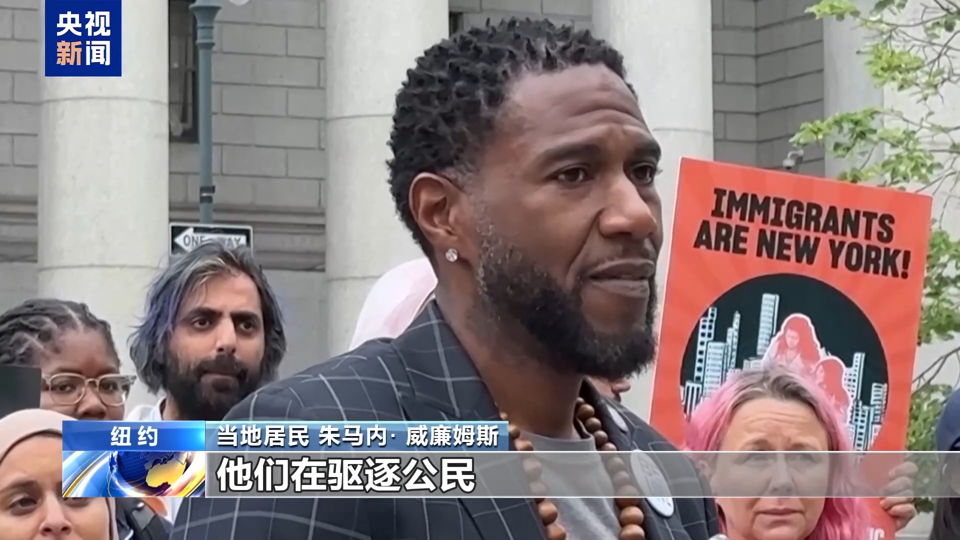 *當地居民 帕特里夏·威廉姆斯:*1968年7月4日,我持學生簽證來到這裏,但在上學後的某段時間裏,我有可能因為簽證失效而被抓起來,所以我為所有的人感到難過。我拿到了綠卡,我獲得了公民身份,但現在有些人和我一樣遵守法律,卻被抓了起來。我覺得我有責任來到這裏發聲。