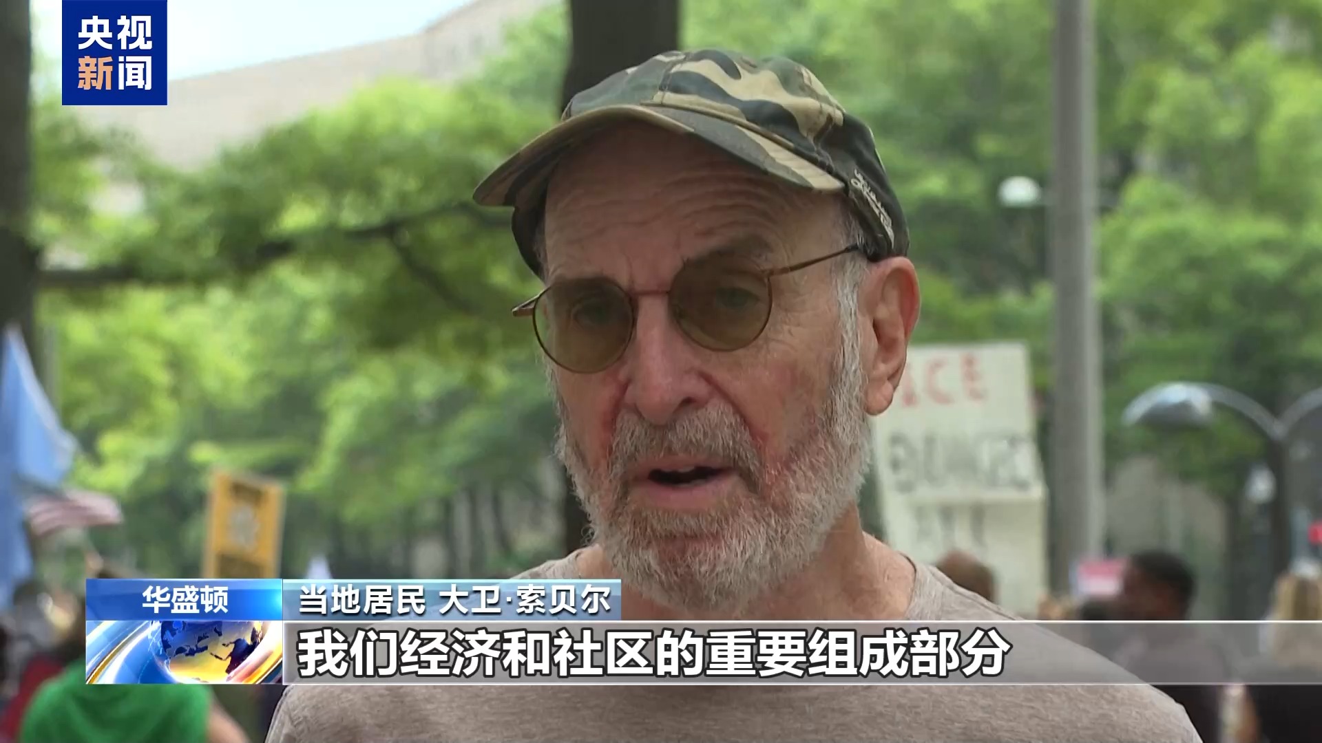 *當地居民 大衞·索貝爾:*人們必須明白,在城市工作的移民工人是我們經濟和社區的重要組成部分。我身後的人們日復一日地在華盛頓特區辛勤工作。我們和整個社區在這裏表達我們對移民羣體的支持。
