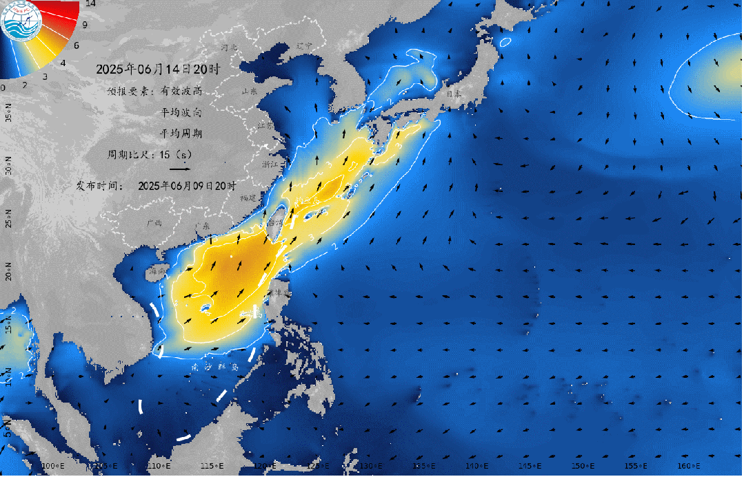 請在上述海域作業的船隻注意避浪,並及時關注我台後續海浪預警報。