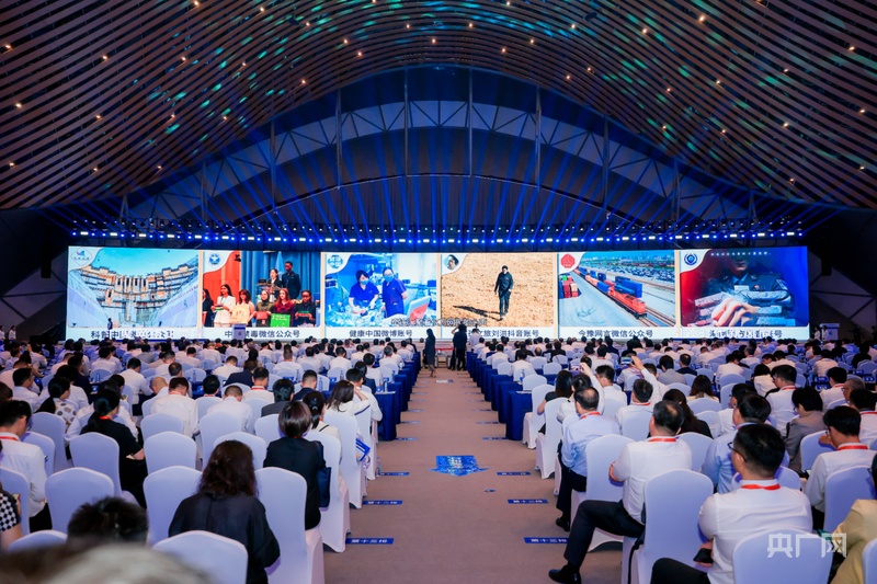 大會主論壇環節,展示了“走好網上羣眾路線百個成績突出賬號推選活動”成果(央廣網發 主辦方供圖)