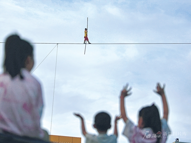 6月6日,演員在烏魯木齊杉杉奧特萊斯購物廣場表演高空達瓦孜。天山網-新疆日報記者鄒懿 攝