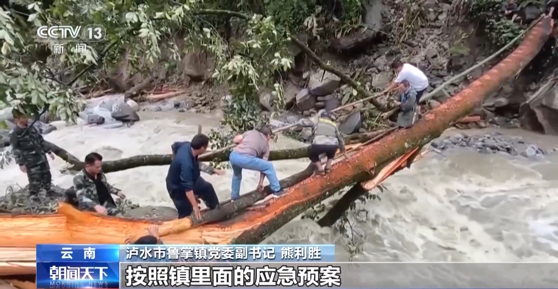 *瀘水市魯掌鎮黨委副書記 熊利勝:*按照鎮裏的應急預案,根據現場情況分了4個組進入三河村,及時對自然災害可能影響到的區域範圍內的羣眾,安全轉移到應急避難場所。