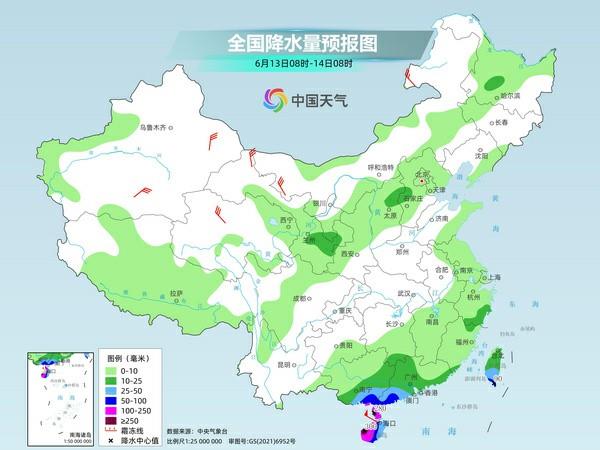 受南海熱帶低壓及其加強後的颱風影響,未來三天(6月11日至13日),海南島、廣東等地將現明顯風雨天氣,部分地區有大到暴雨,局地大暴雨,需做好防颱風準備。在北方,華北、黃淮今天高温再起,並將和西北地區東部、四川盆地的高温連成一片,部分地區高温持續時間長、強度大,需注意防暑降温。