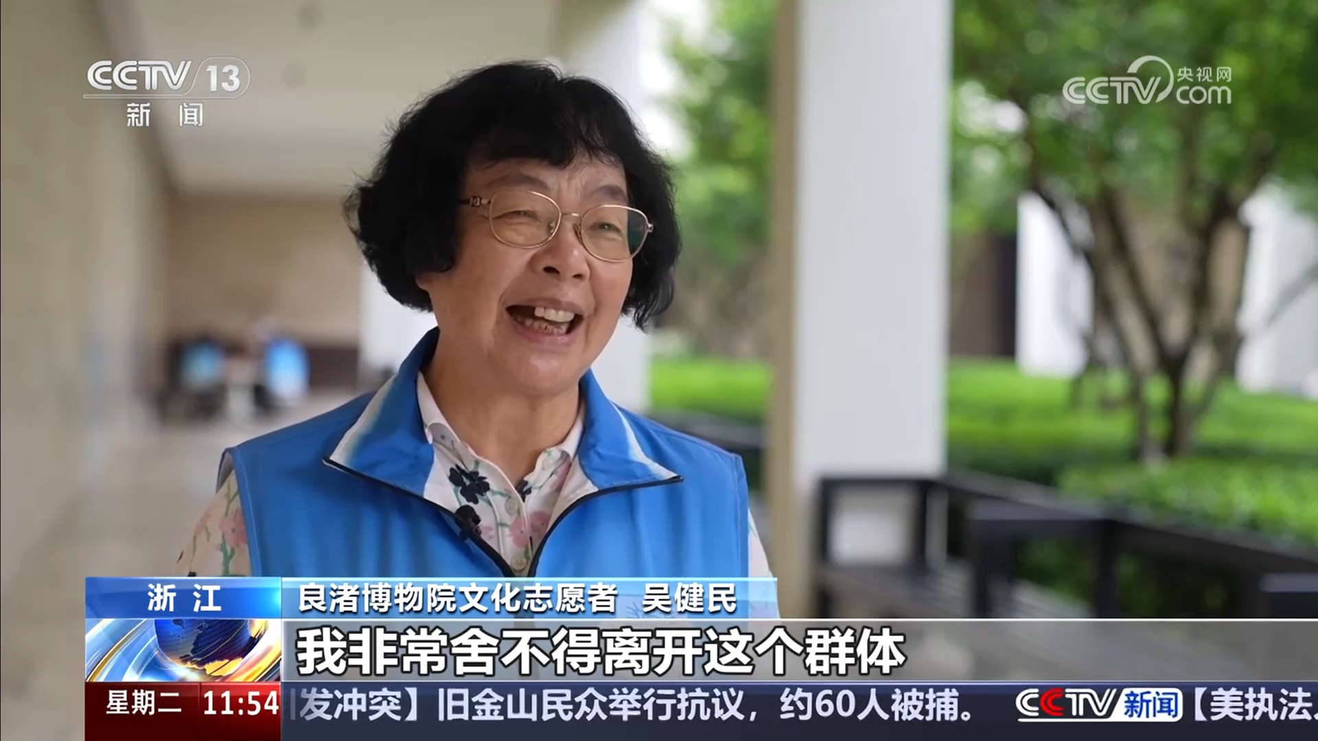 良渚博物院文化志願者 吳健民: 博物館就像一個老年大學一樣,大家在這個平台上進行交流,互相學習,非常好的一種氛圍。只要我身體允許的情況下,我非常捨不得離開這個羣體。