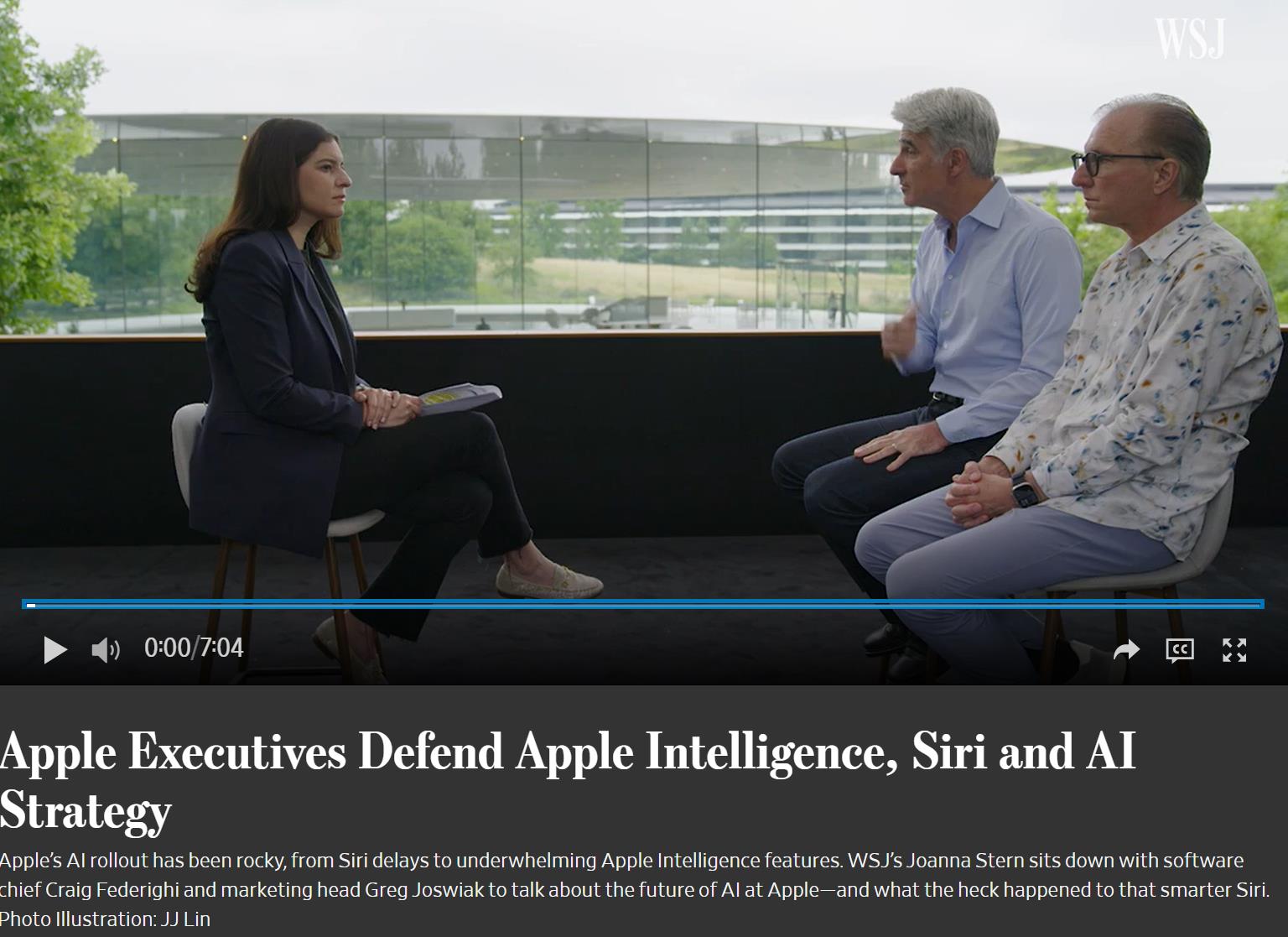 【環球網科技綜合報道】6月11日消息,據《華爾街日報》報道,蘋果公司軟件工程高級副總裁 Craig Federighi 和全球營銷高級副總裁 Greg Joswiak談到蘋果的人工智能(Apple Intelligence)業務時,強調其戰略重點在於系統集成而非開發傳統聊天機器人。