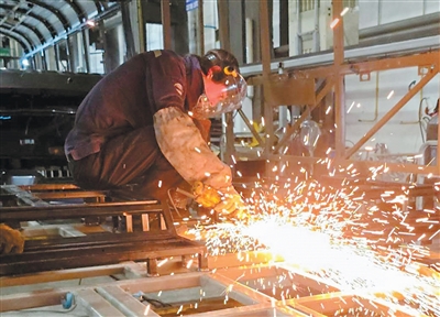 工作人員在CKD工廠內進行客車檢修作業。