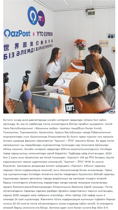 ——摘自烏茲別克斯坦Tnews網站報道《在聯合採訪中瞭解哈薩克斯坦郵政情況》