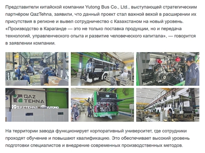 該項目是宇通客車擴大在該地區業務的重要里程碑,並將與哈薩克斯坦的合作提升到一個新水平。該公司負責人表示:“在卡拉幹達的生產不僅是產品的供應,更是技術轉讓、管理經驗的傳授以及人力資本的發展。”