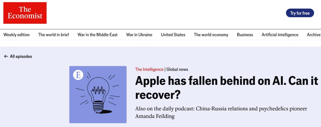 【環球網科技綜合報道】6月11日消息,據《經濟學人》報道,儘管蘋果仍可通過生產昂貴產品賺取了豐厚利潤,但它在人工智能的發展上卻遇到了難題。