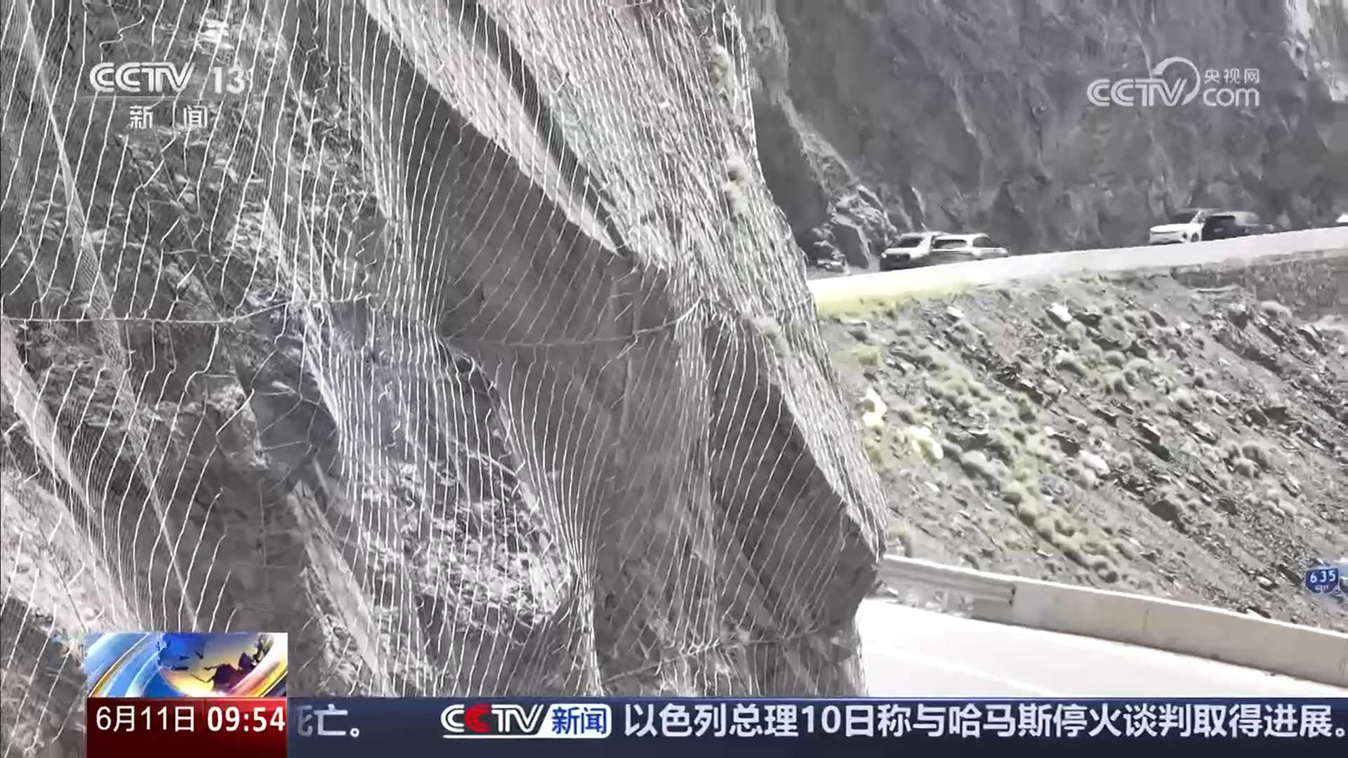 告別獨山子大峽谷繼續向前行,車輛進入山區爬升路段。從空中俯瞰,獨庫公路像一條巨龍盤旋在羣山之間,隨着海拔升高,道路兩側山勢也愈發陡峭,走過一處叫“老虎口”的狹窄山路,兩側山體上附着的各防護網越治越密,在獨庫公路建設初期,這裏犧牲的築路戰士最多,而現在,這條路段也是地質災害頻發區。