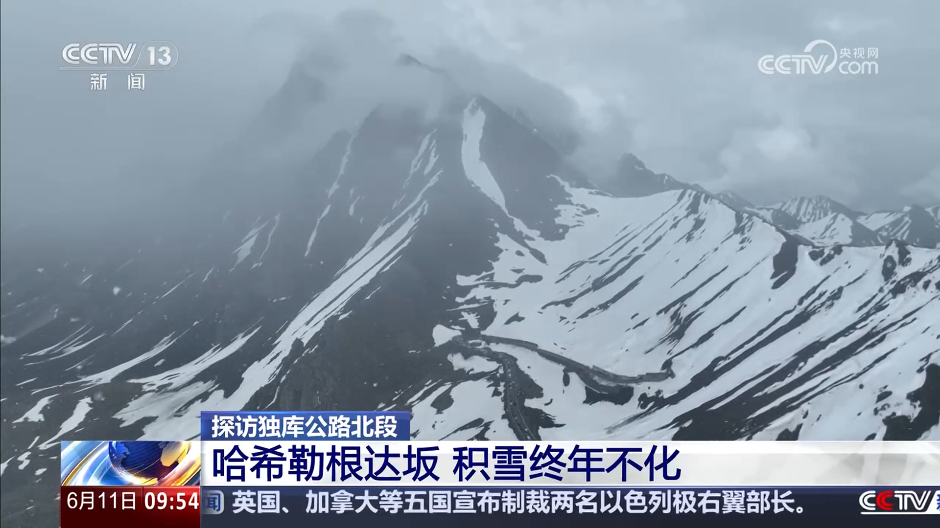 穿過“老虎口”,就來到了獨庫北段海拔最高的哈希勒根達坂,這裏積雪終年不化,每年4、5兩個月,路政養護部門都要安排大型清雪機械清理路面,保障獨庫公路能在6月前後順利開通。