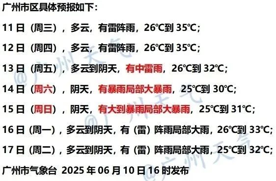 據廣州市氣象台,14-15日廣州將有一次暴雨大暴雨過程。