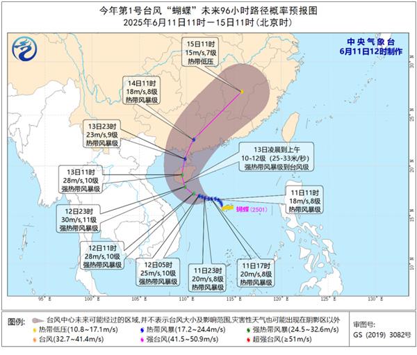 今年第1號颱風“蝴蝶”今天(6月11日)已經生成,13日或在華南兩次登陸。今天起至13日,海南島、廣東東南部、廣西西南部等地將有強降雨,局地或有特大暴雨。14日至15日隨着颱風北上與冷空氣相遇,強降雨還可能波及廣東、江西、福建、浙江等地,強降雨範圍、強度可能不亞於颱風登陸時。