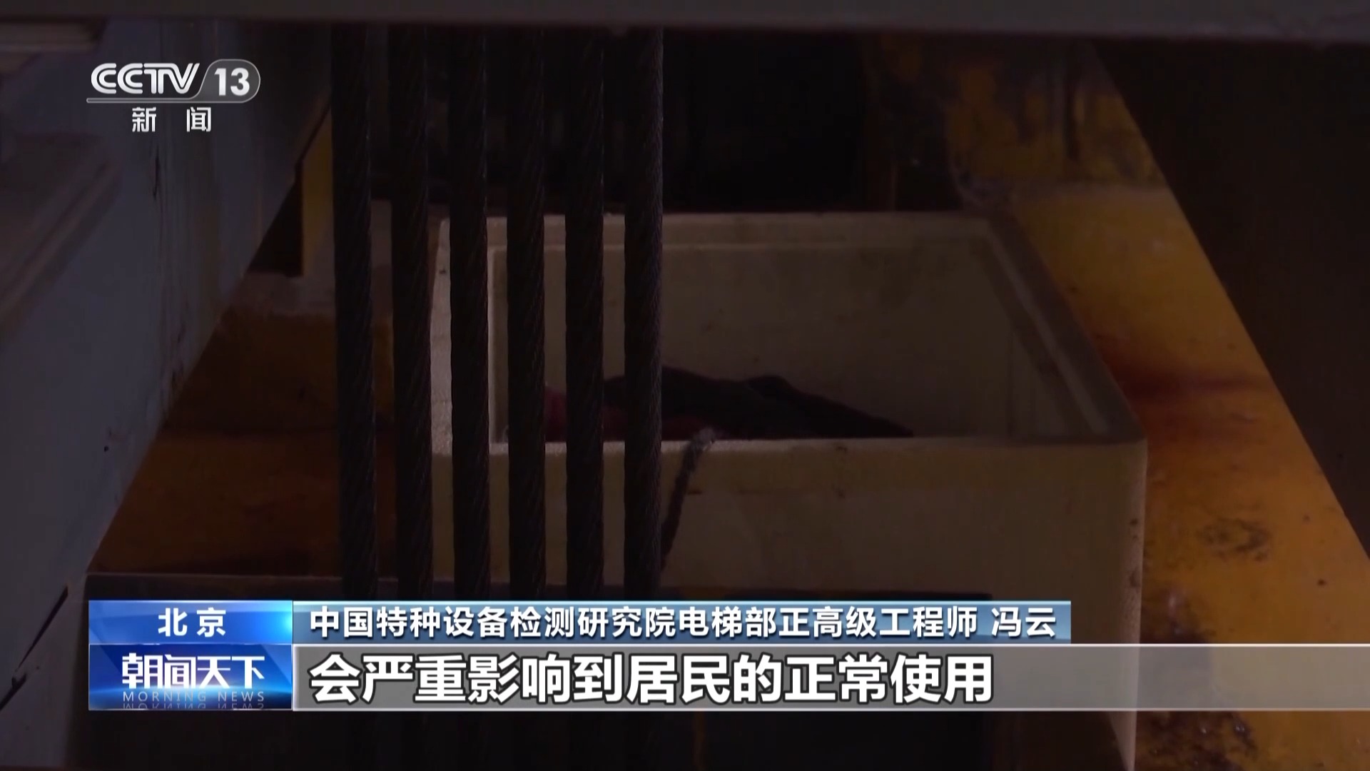 *中國特種設備檢測研究院電梯部正高級工程師 馮雲:*這台電梯是運行了大概22年的老電梯,它在正常運行過程中就容易出現經常性的停梯故障,會嚴重影響到居民的正常使用。