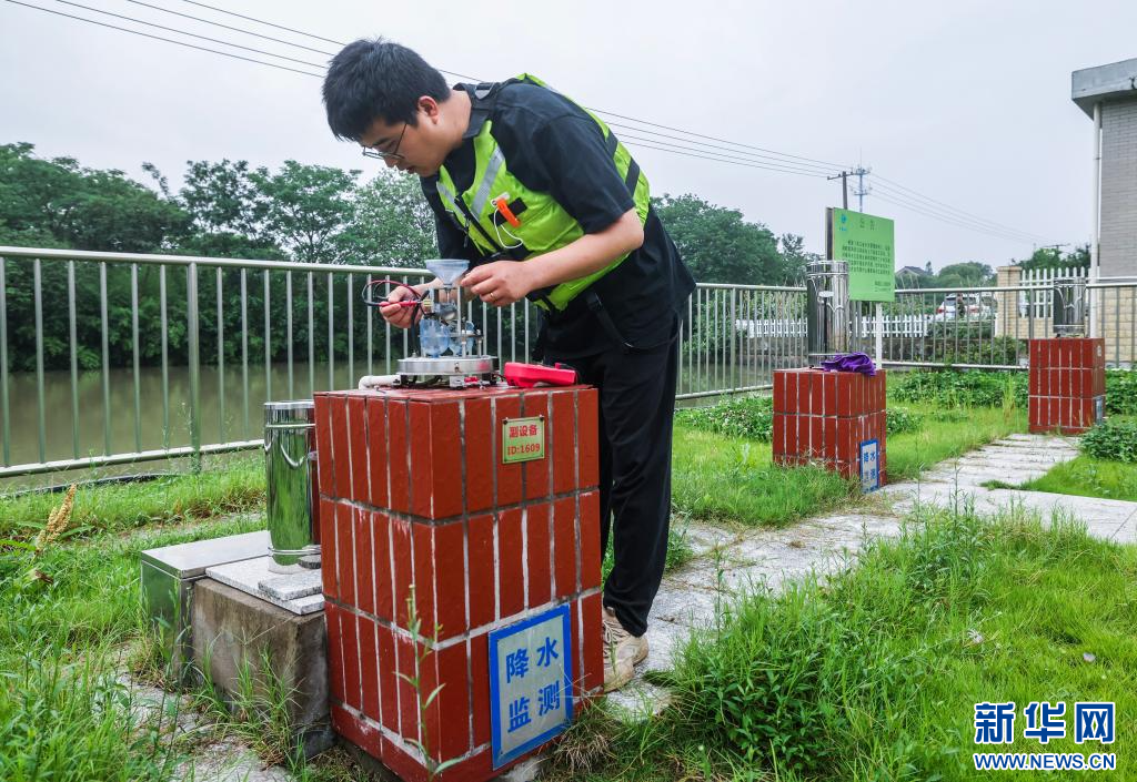 6月11日,嘉興市南湖區餘新鎮水位站工作人員調試水位監測設備,確保本輪強降雨期間數據即時回傳至防汛指揮系統。