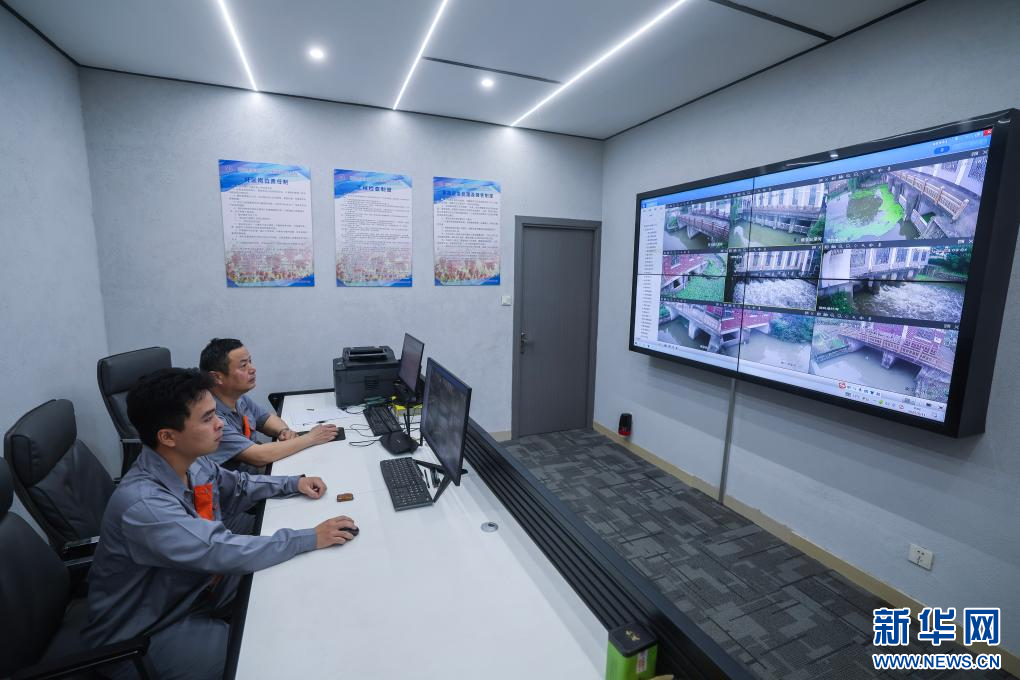 6月11日,嘉興市南湖區大橋鎮十八里圩區運維人員在夏義港泵站控制中心查看即時監控畫面,及時發現並消除安全隱患。