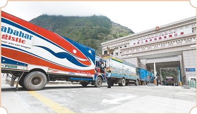 在吉隆口岸,能看到一輛又一輛尼泊爾運輸車通過口岸進入中國。卡車上多掛有中尼雙語標牌,上面寫着“尼泊爾青貯飼料(動物飼料)出口中華人民共和國”等字樣。2023年7月,尼泊爾飼草首次跨越喜馬拉雅山脈進入中國,正是經由吉隆口岸。
