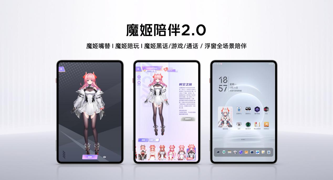 軟件層面,平板搭載REDMAGICOS10.5系統,集成紅魔姬MORA智能體2.0。遊戲功能新增AI語音操控(支持“開槍”“趴下”等指令)、AI戰術建議(即時戰場分析)、AI連麥字幕即時翻譯等創新功能,電競鍵可一鍵進入遊戲空間。