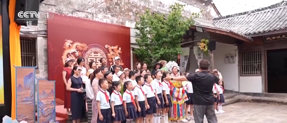 在浙江省金華市金東區嶺下鎮的坡陽古街上,當地合唱團正全情演唱經典歌曲《在希望的田野上》《打起手鼓唱起歌》,一首首熟悉的旋律喚起了人們內心深處的共鳴。