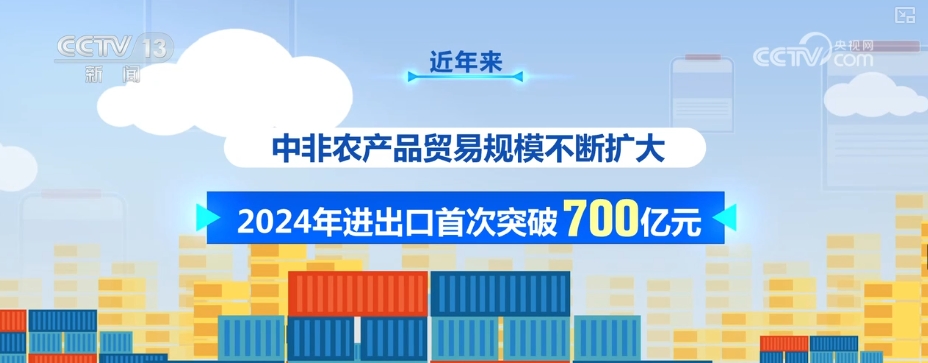 近年來,中非農產品貿易規模不斷擴大,2024年進出口首次突破700億元。2025年前5個月,我國自非洲進口農產品158.3億元。對非洲出口農藥製劑、農業機械分別增長12%、41%。