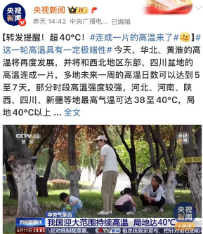 【環球網消費綜合報道】全國多地遭遇持續高温天氣,部分地區氣温突破40℃,中國氣象局公共氣象服務中心發佈今年首期全國高温中暑氣象預報。