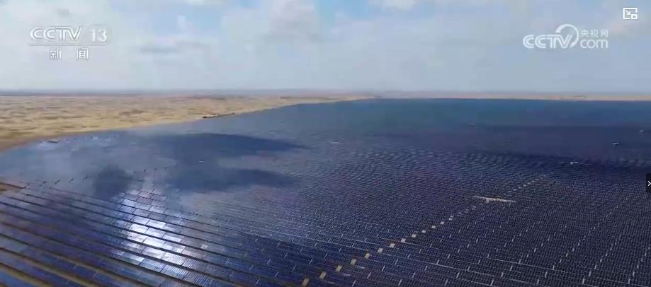 在內蒙古庫布齊沙漠,國家“沙戈荒”基地重點項目——庫布齊新能源基地200萬千瓦光伏項目,進入6月以來日均發電量達1031萬千瓦時,進一步提升蒙西電網清潔能源供應占比。