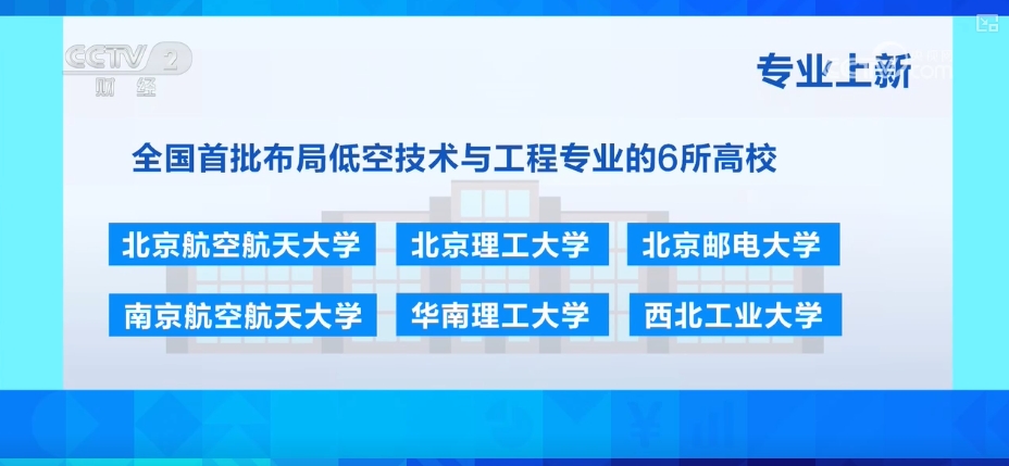 據瞭解,全國首批佈局低空技術與工程專業的6所高校為北京航空航天大學、北京理工大學、北京郵電大學、南京航空航天大學、華南理工大學和西北工業大學。