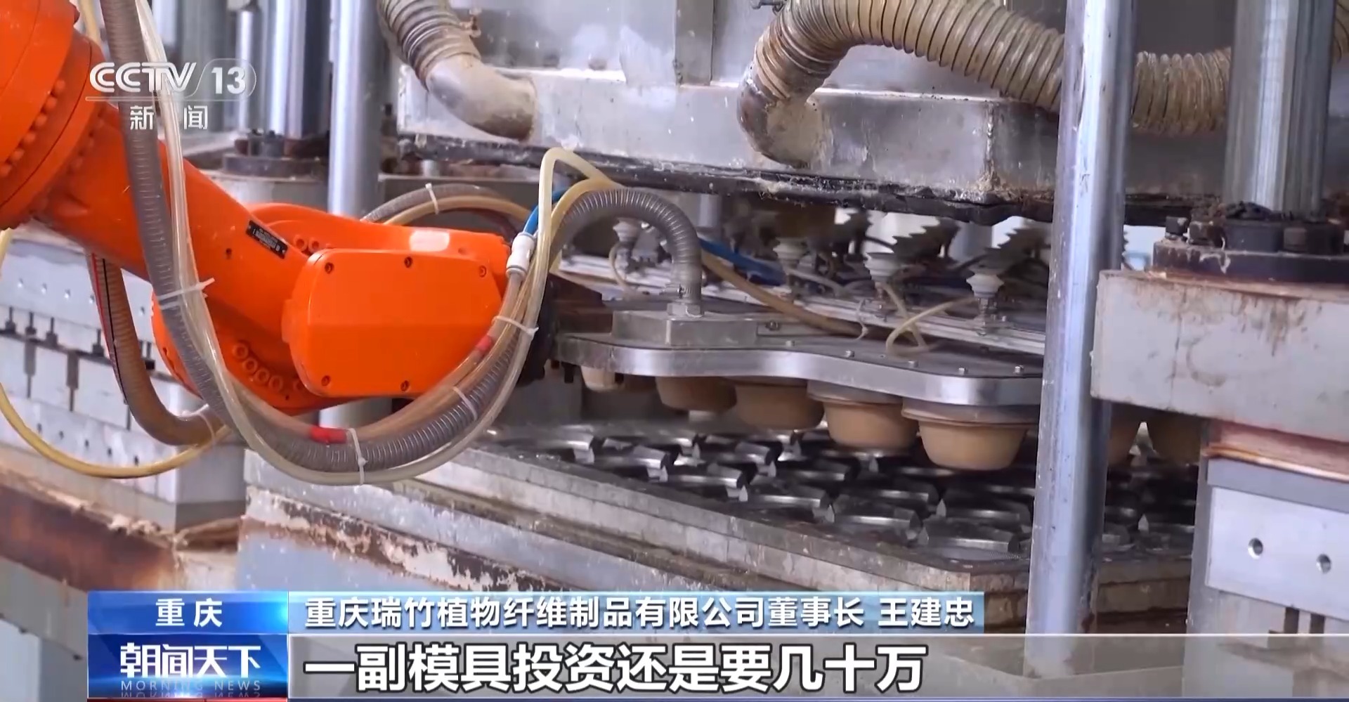 *重慶瑞竹植物纖維製品有限公司董事長 王建忠:*我們要根據市場的需求開發新的模具,一副模具投資要幾十萬,這種產業線我們已經上了12條,馬上我們還準備新建一個車間,再上16條生產線。