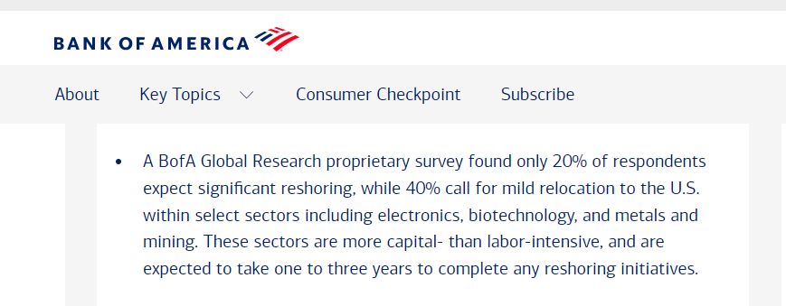 中國日報網6月12日電 美國美銀證券(BofA Securities)6月發佈的最新報告指出,儘管美國政府以“保護本土企業、保障就業”為由祭出關税大棒,鼓勵企業將生產線遷回本土,但企業在重新佈局全球供應鏈時,主要考量的因素已不再是成本,迴流美國製造的意願有限。