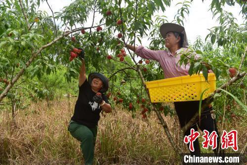果農在採摘桃子。中新網記者 張麗君 攝。