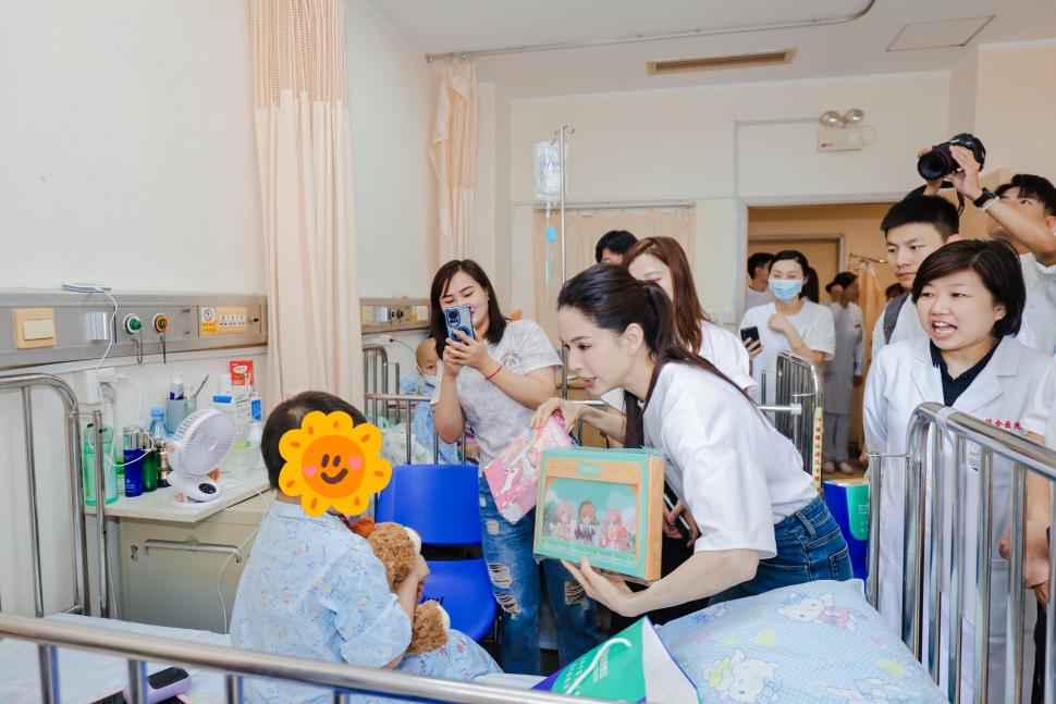 活動現場,李若彤女士與公益基金會代表及輕鬆健康集團組成慰問團,走訪兒科病房,與患兒及醫護人員進行互動交流。