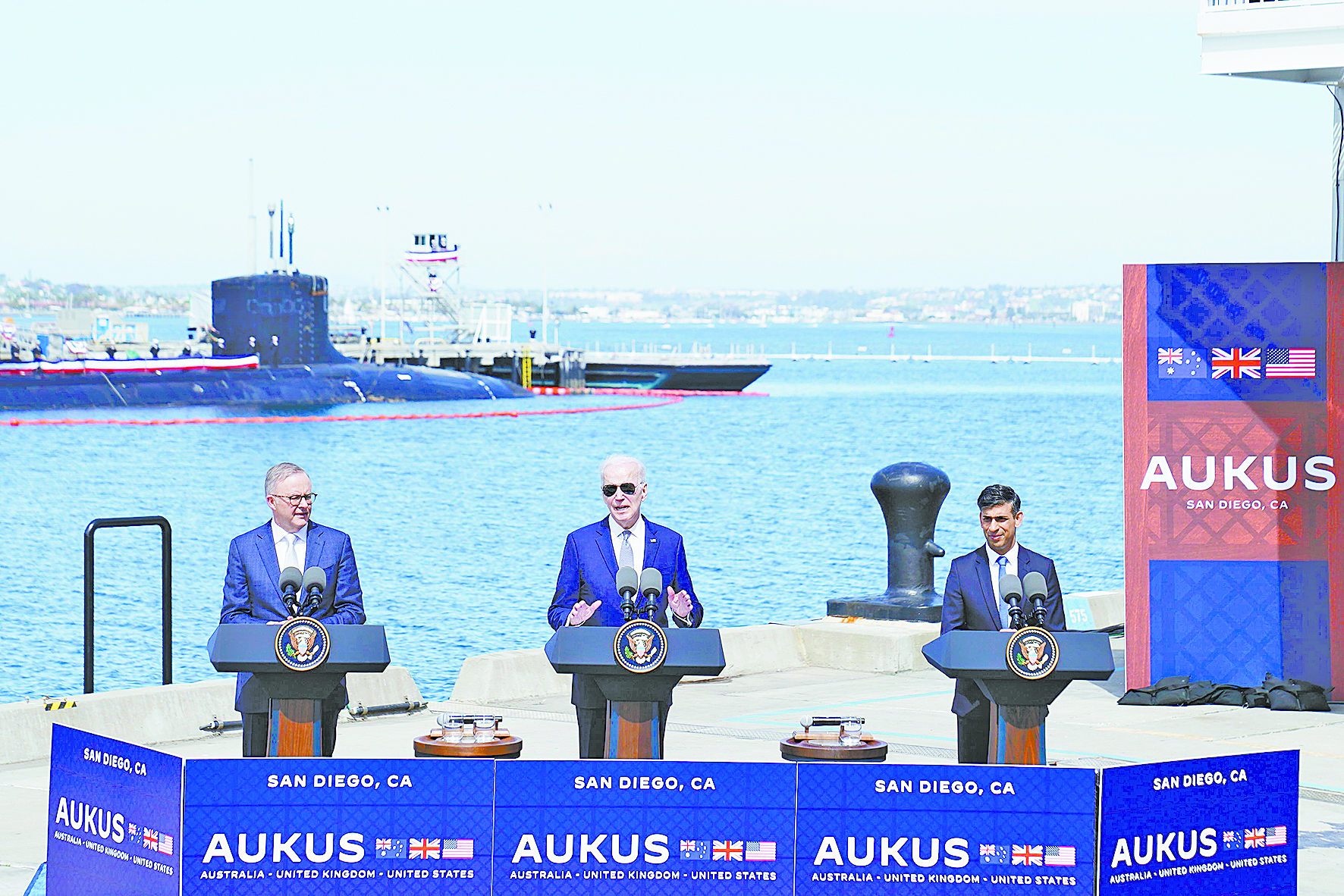 【環球時報駐美國特約記者 蕭達 環球時報記者 郭媛丹 環球時報特約記者 王逸】“五角大樓考慮廢除與澳大利亞和英國簽署的‘奧庫斯’(AUKUS)核潛艇協議。”美國彭博社當地時間11日以此為題報道稱,美國國防部已啓動對“奧庫斯”核潛艇協議的重新審查。2021年,美、英、澳三國宣佈組建名為“奧庫斯”的新安全聯盟,並簽署協議,由美英向澳大利亞提供核潛艇。這一協議不僅從一開始就因為澳撕毀與法國的常規潛艇採購協議而遭到指責,還因為其導致的核擴散風險和在地區安全格局中加劇“陣營對抗”引發國內和國際上的廣泛質疑。美方此次突然改變對“奧庫斯”的態度,立即引起澳大利亞和英國的“焦慮和恐慌”。中國外交部發言人林劍12日表示,中方已多次就美、英、澳建立所謂“三方安全夥伴關係”推進核潛艇及其他尖端軍事技術合作表明立場。我們一貫反對製造陣營對抗,反對加大核擴散風險,反對加劇軍備競賽。