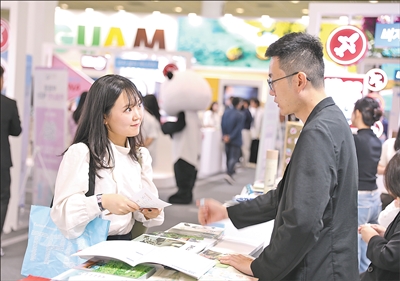 中國展區精心安排了茶藝展示、古琴演奏、傳統雜技等特色活動,麪塑、刺繡、民歌等非遺展示吸引了很多觀眾前來體驗。不少觀眾與可愛的“熊貓人”合影互動,氣氛熱烈。“現在去中國旅遊非常方便,不需要辦簽證。5月底我剛去過青島,非常喜歡那裏的景色和特色小吃。”韓國某企業職員李有鎮在中國展區一邊翻看宣傳冊,一邊告訴本報記者,中國展區的佈置很有特色,宣傳冊內容和現場講解十分詳細,“聽説上海和廈門等城市也很漂亮,以後我還要去更多中國城市看一看。”