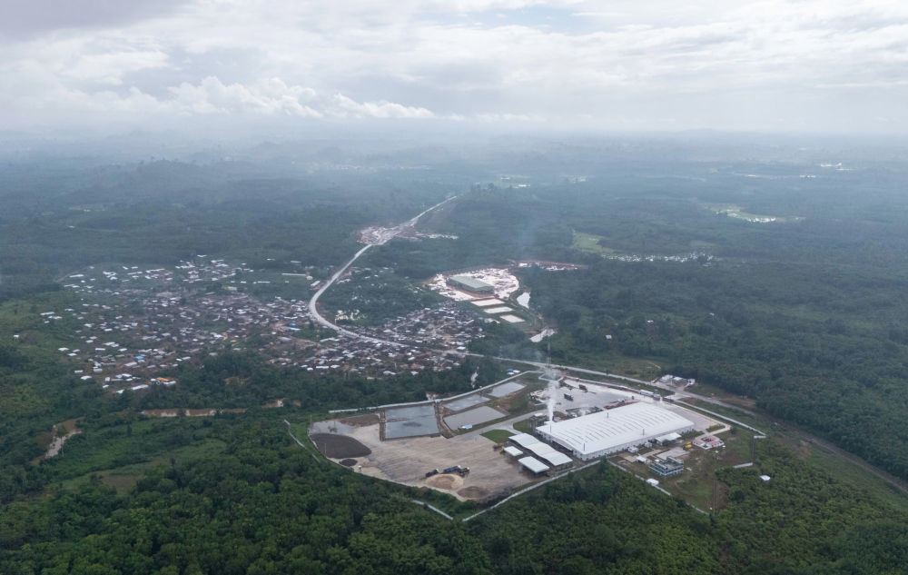 這是2025年5月30日在科特迪瓦聖佩德羅省大貝雷比鎮拍攝的中國企業美蘭集團投產的橡膠加工廠(無人機照片)。新華社記者 王冠森 攝